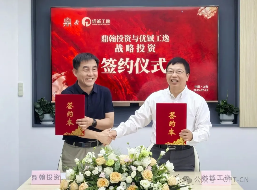 7月25日上午,优铖工逸与鼎翰投资在上海正式签署战略投资协议。此次投资将加速优铖工逸在高端新材料领域的战略布局,推动高性能材料等关键方向的技术突破与产业化进程。